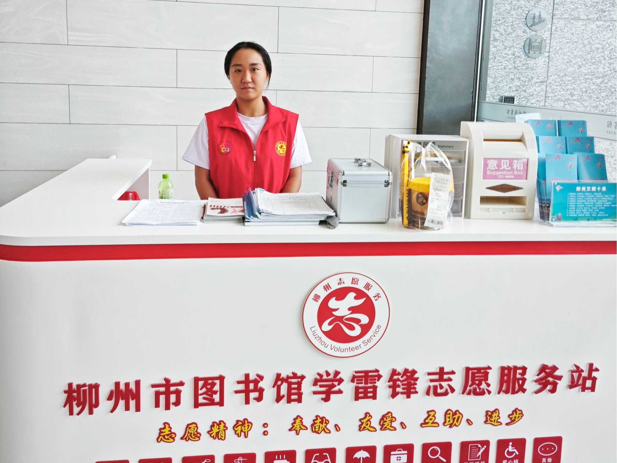 王煜霞同学结合专业特长投身柳州市图书馆志愿活动,在书籍整理、读者引导等工作中展现党员风采,以实际行动服务公共文化事业,展现专业素养。