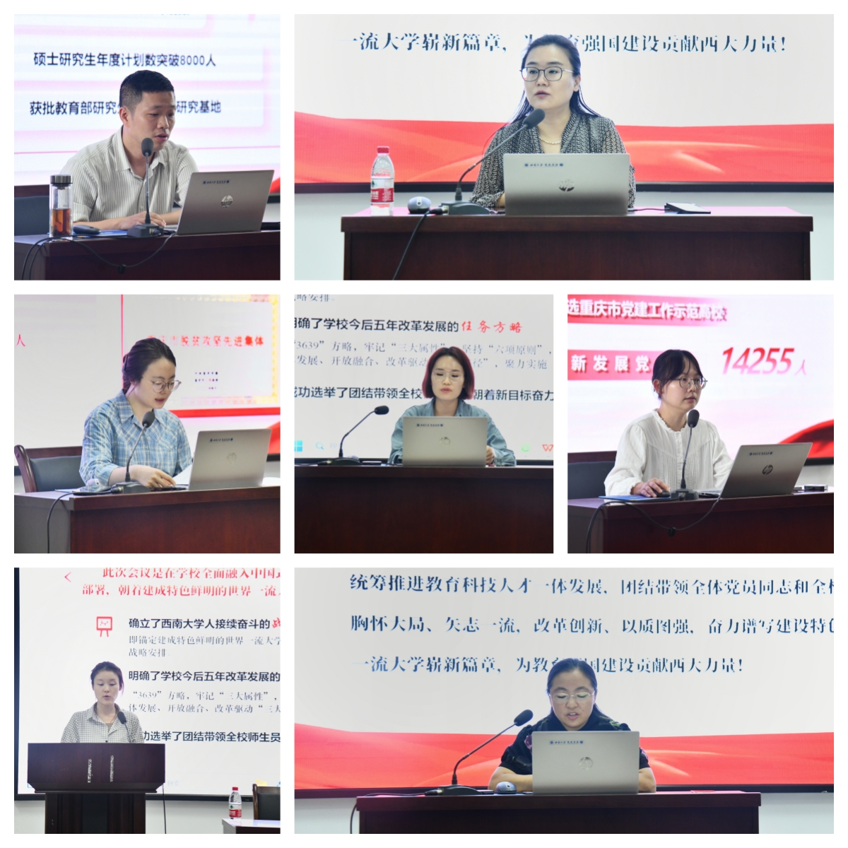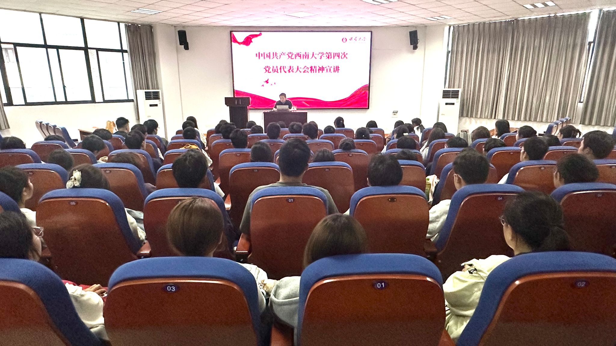 为坚持和加强党的全面领导,牢牢把握正确政治方向,9月17日至29日,必赢优惠y272net党委开展了西南大学第四次党代会精神宣讲活动。学院党政领导、第四次党代会代表、学生党支部书记宣讲,覆盖全院学生。