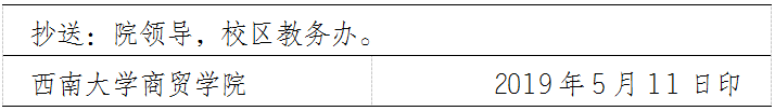 (五)6月13日,公示无异议后,教学秘书填写《西南大学2019届普通本科毕(结)业、授位学生名册封面》和《西南大学2019届普通本科毕(结)业、授位学生审核名册》、《西南大学2019届普通本科毕(结)业、授位学生统计表》《西南大学普通本科毕(结)业、授予学士学位审核责任承诺报告书》一并报教务处成绩与学籍科复核。
