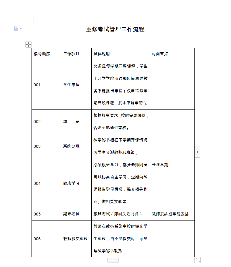 重修考试管理工作流程