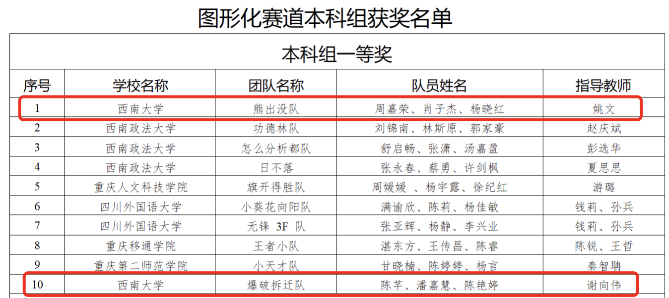 (赛事获奖公示信息参见:http://jw.cq.gov.cn/zwxx_209/gggs/202312/t20231201_12638503.html)