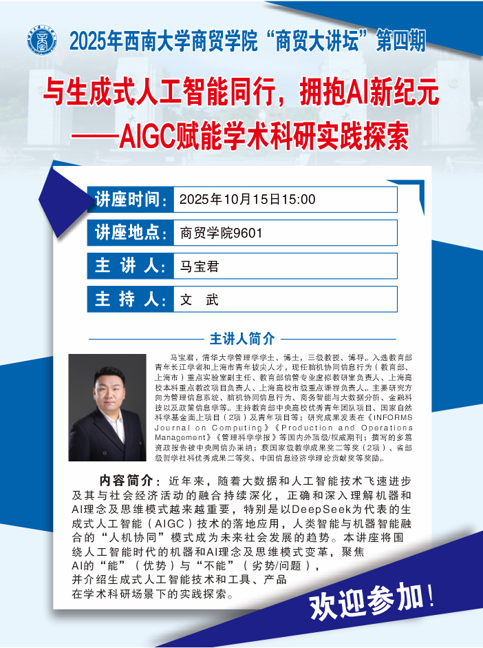 商贸大讲坛:与生成式人工智能同行,拥抱AI新纪元——AIGC赋能学术科研实践探索