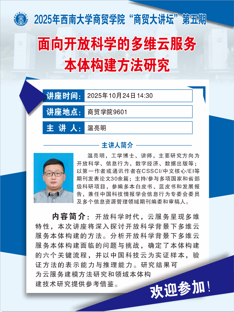 商贸大讲坛:面向开放科学的多维云服务本体构建方法研究