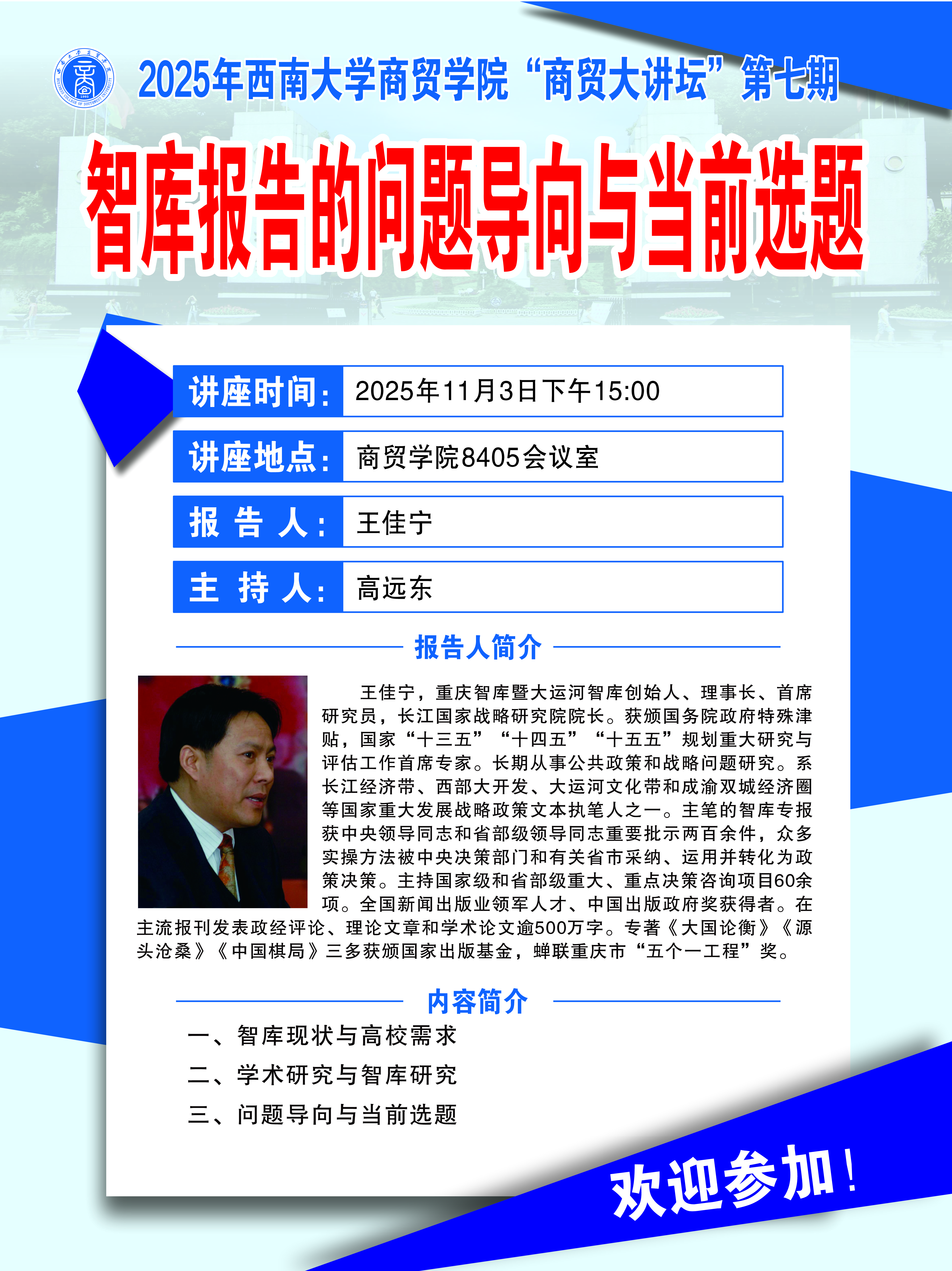 商贸大讲坛:智库报告的问题导向与当前选题