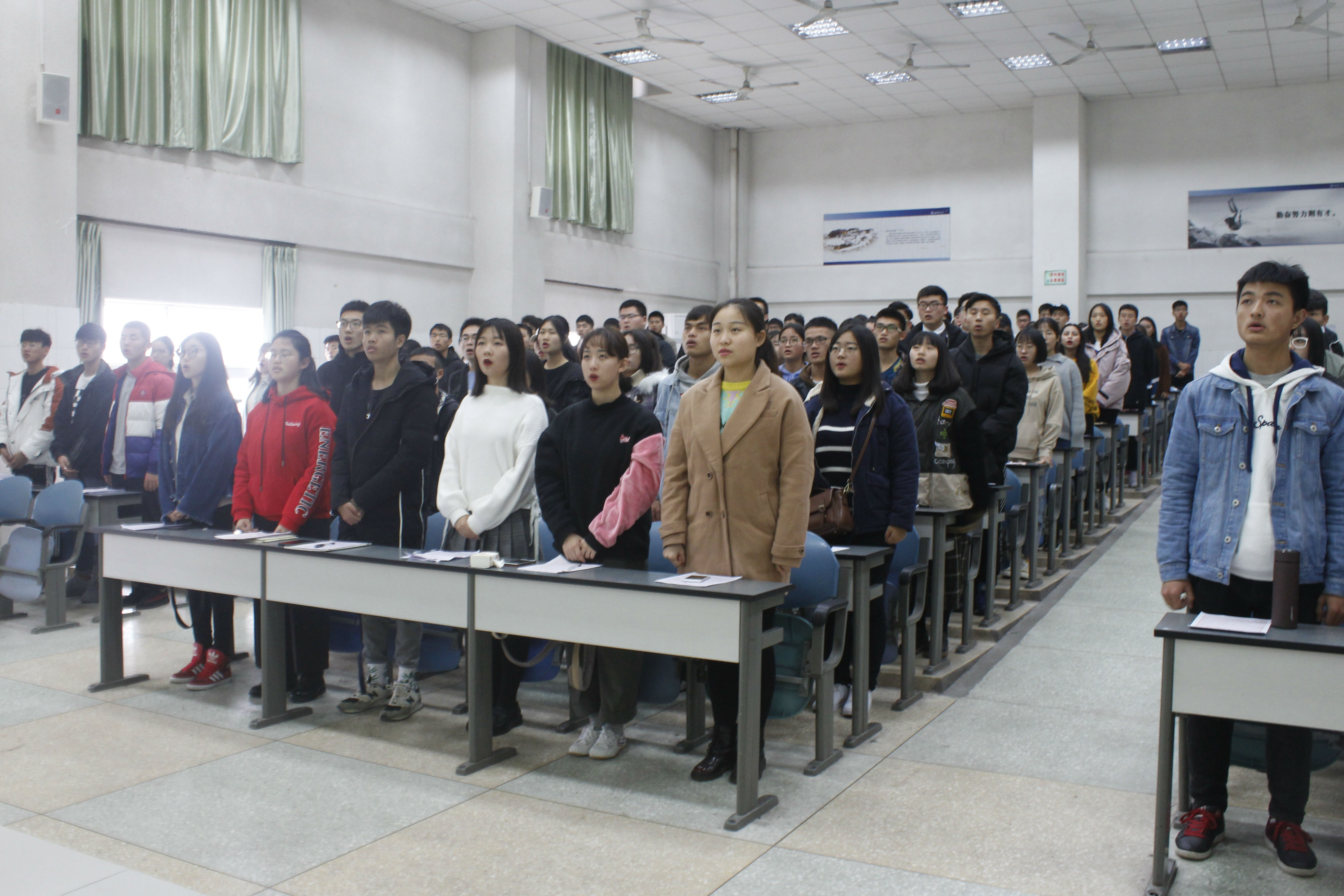12月2日下午15:30,学院团校在第二教学楼2510教室举行了第一次团课实践活动,进行了国歌《义勇军进行曲》《国际歌》团歌《光荣啊,中国共青团》和《西南大学校歌》的学习。