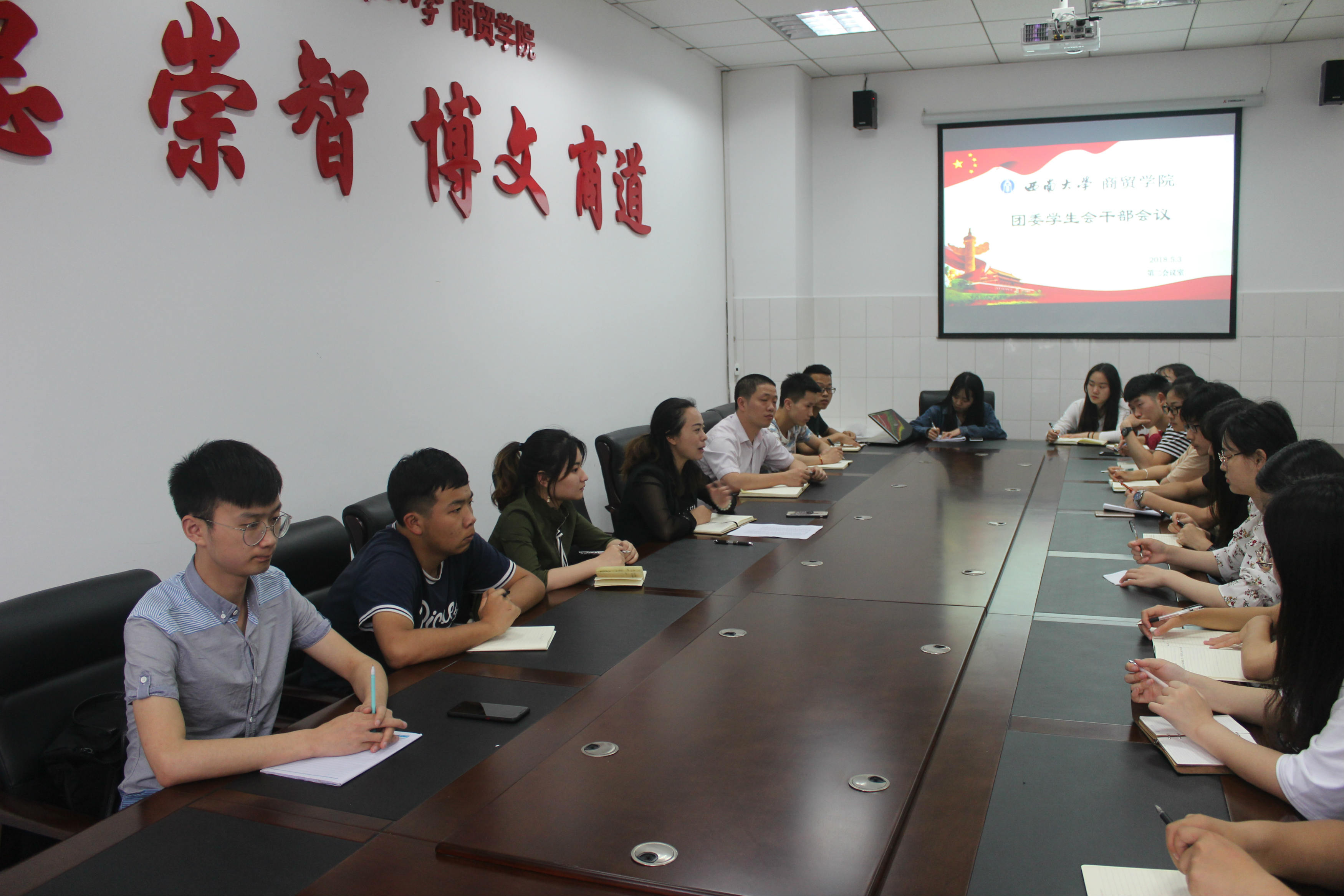 5月3日下午,必赢优惠y272net团委学生会在第二会议室召开全体干部会议。本次会议由必赢优惠y272net党委副书记、纪委书记兰英老师主持,学院团委书记廖鹏老师也参加了会议。